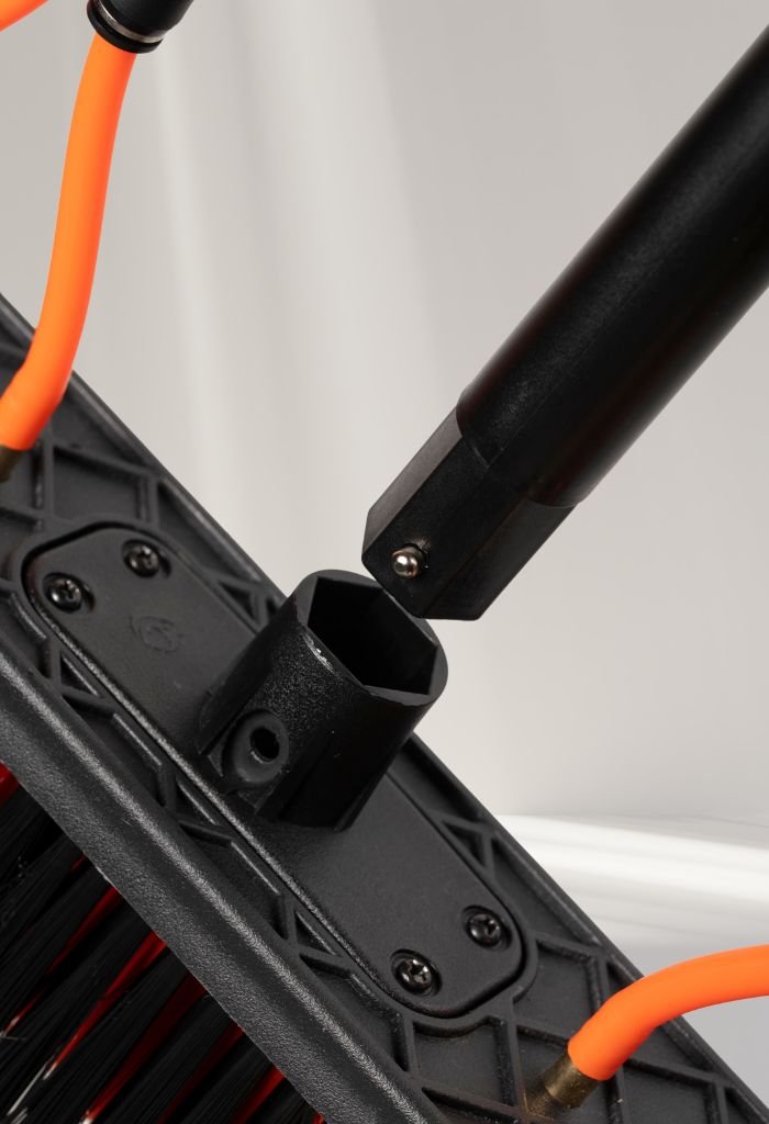 Thanks to its clever design, our telescopic handle extends smoothly and remains stable at any length. The sturdy lock prevents sagging, allowing you to work at height with confidence. Moreover, every telescopic handle is compatible with our accessories, which you can easily change without twisting thanks to the HexaLock® 1-click system .
