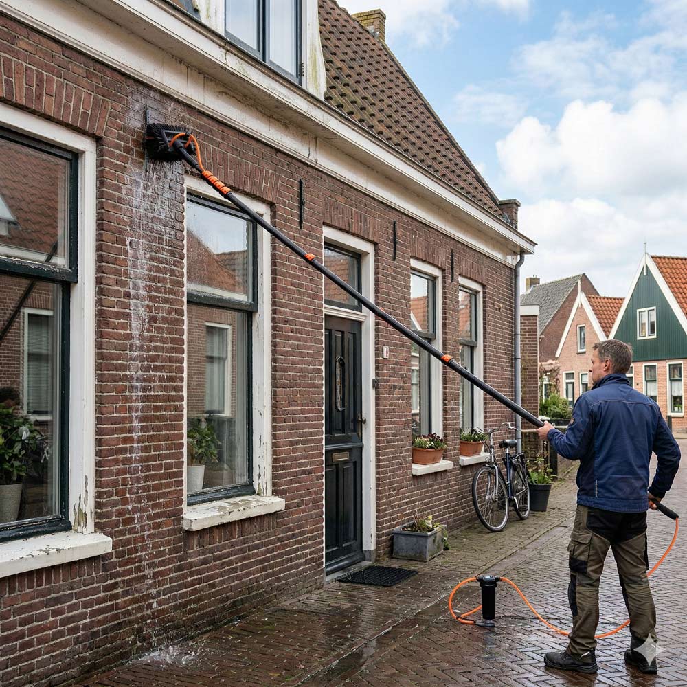 Whether you have brick, stucco, Keralit, or wooden cladding, discover how a telescopic pole can keep your walls in top condition and save you thousands of euros in maintenance costs.