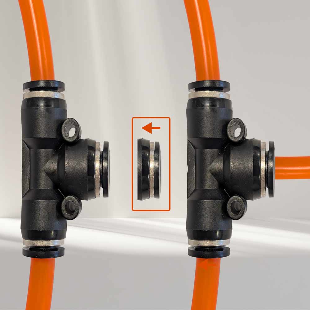 Click the thin water hose from the handle into the outlet of the SoapFlow dispenser.