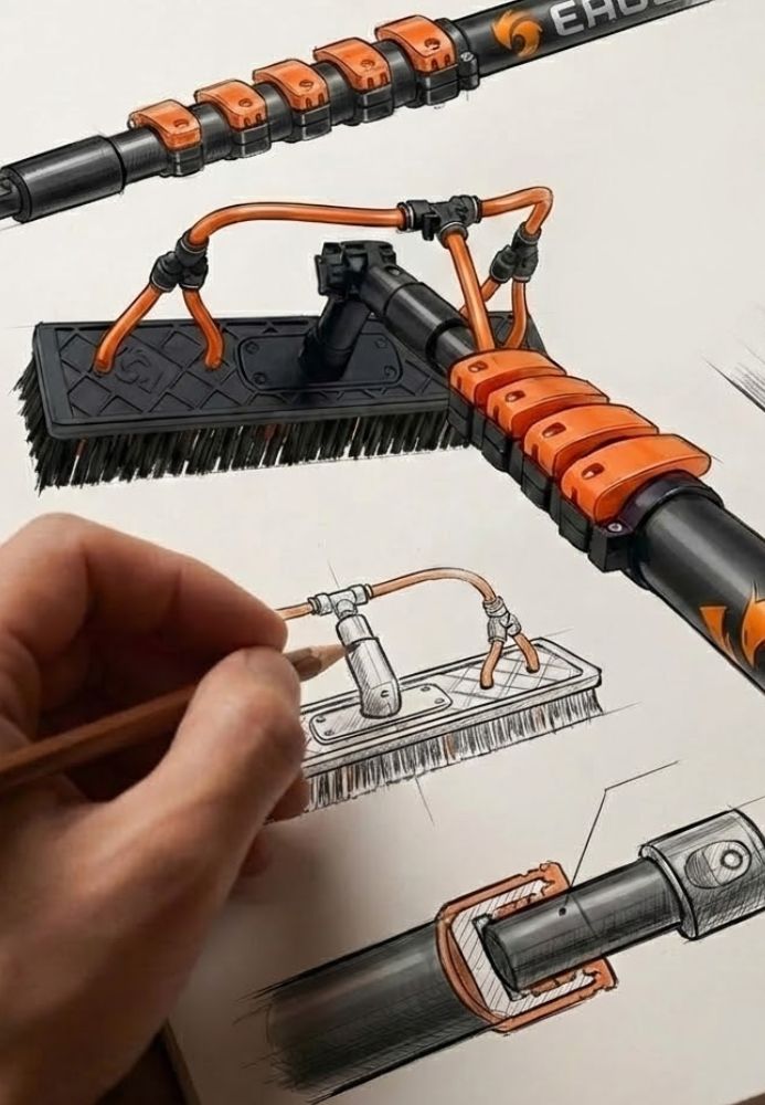 Three years of designing, building prototypes, and most importantly, testing. We considered grip, water flow, stability at height, and ease of use. We tinkered until we had a system that didn't feel like a "loose stick," but rather a precision tool.