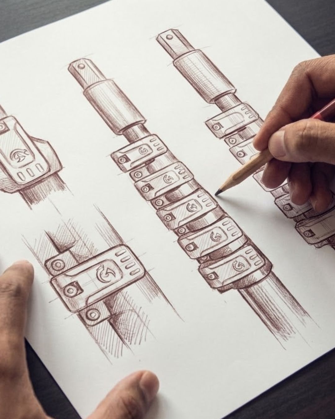 We found the gap in the market and analyzed every pain point. Why does a brush spin away? Why is changing it so much trouble? The first sketches for AlignTrack and HexaLock® were born on the drawing board.